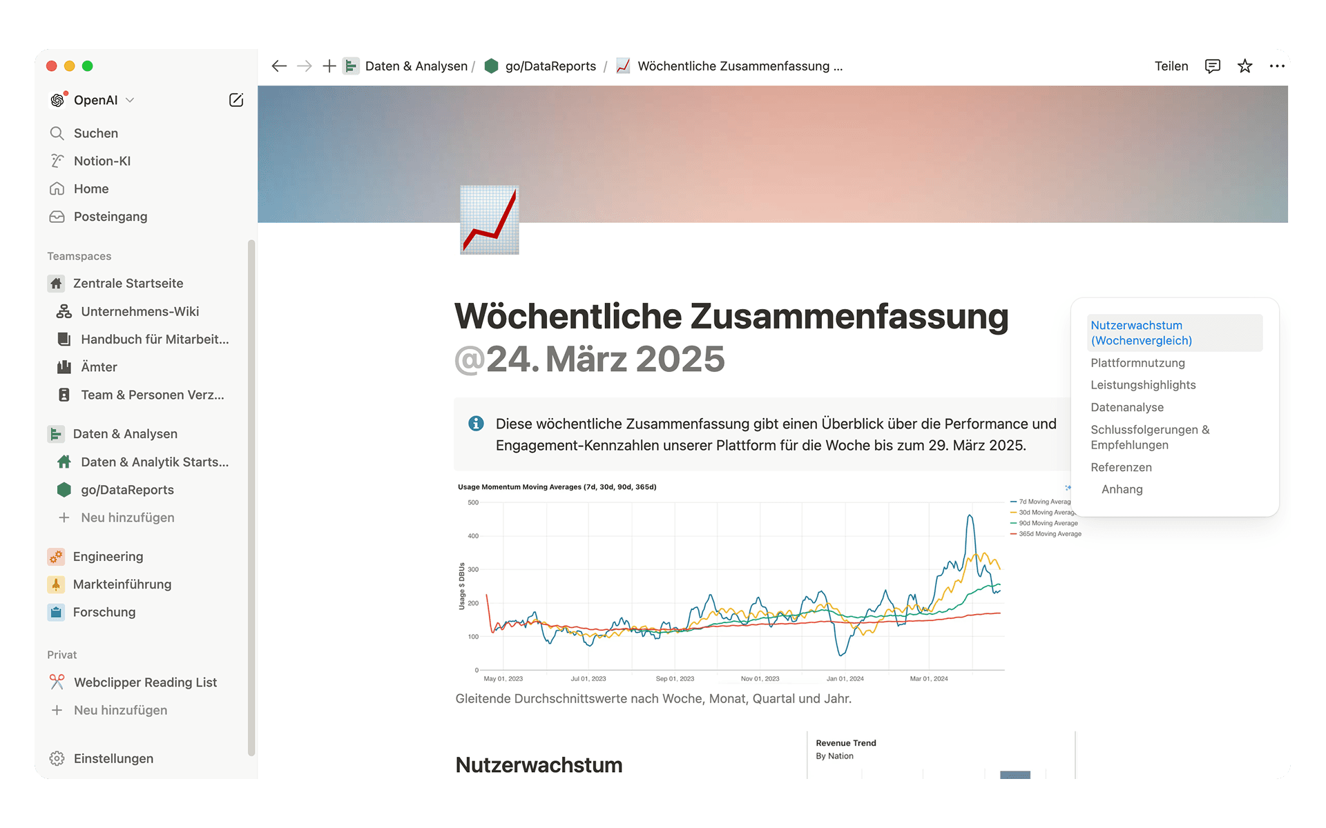 Das Data-Science-Team von OpenAI sparte Stunden manueller Arbeit, indem es das Berichtswesen in Notion automatisierte und wichtige operative Daten samt Dashboards in einem durchsuchbaren Hub mit Einblicken in Echtzeit für Entscheider zusammenfasste.